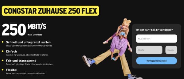 0,00€ AG + GRATIS Fritz!Box! 🔝 congstar Zuhause 250 Flex – mtl. kündbarer DSL Tarif mit 250 Mbit/s | 100 Mbit/s für 33€ mtl.