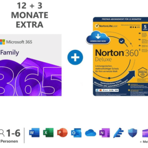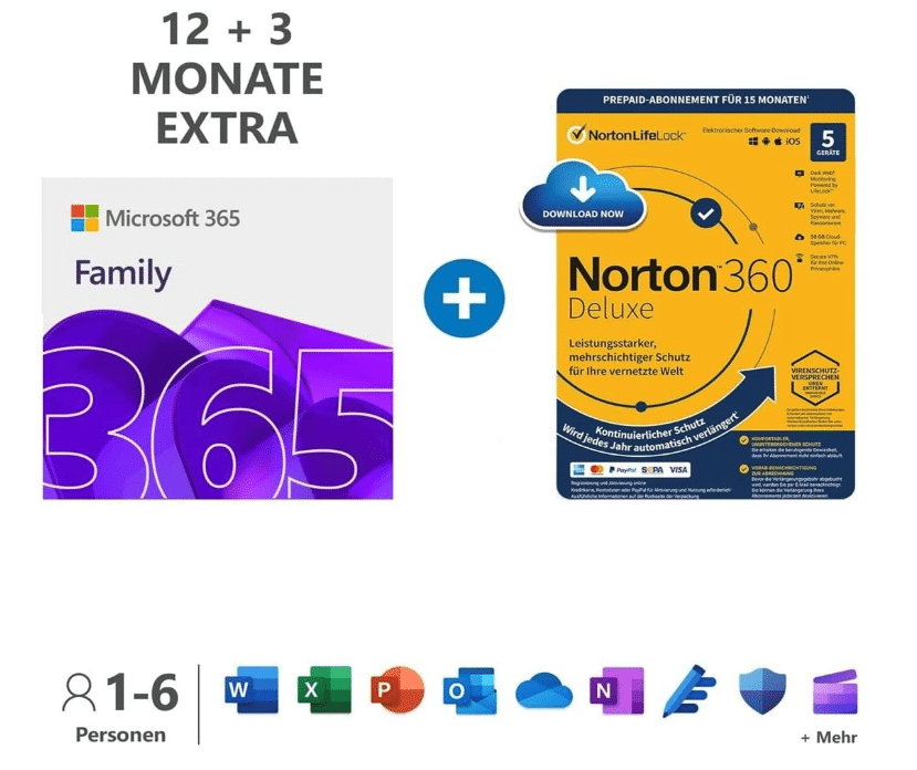15 Monate 💻 Microsoft 365 Single + Norton 360 Deluxe (5 Geräte)
