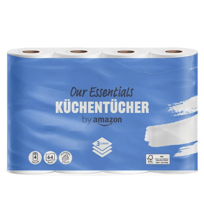 - 16 Rollen (4x 4er Packs) „by Amazon“ Küchenrollen für 8,73€