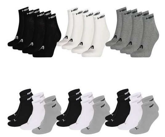 Je 9x Quarter-Socken von Head & Puma