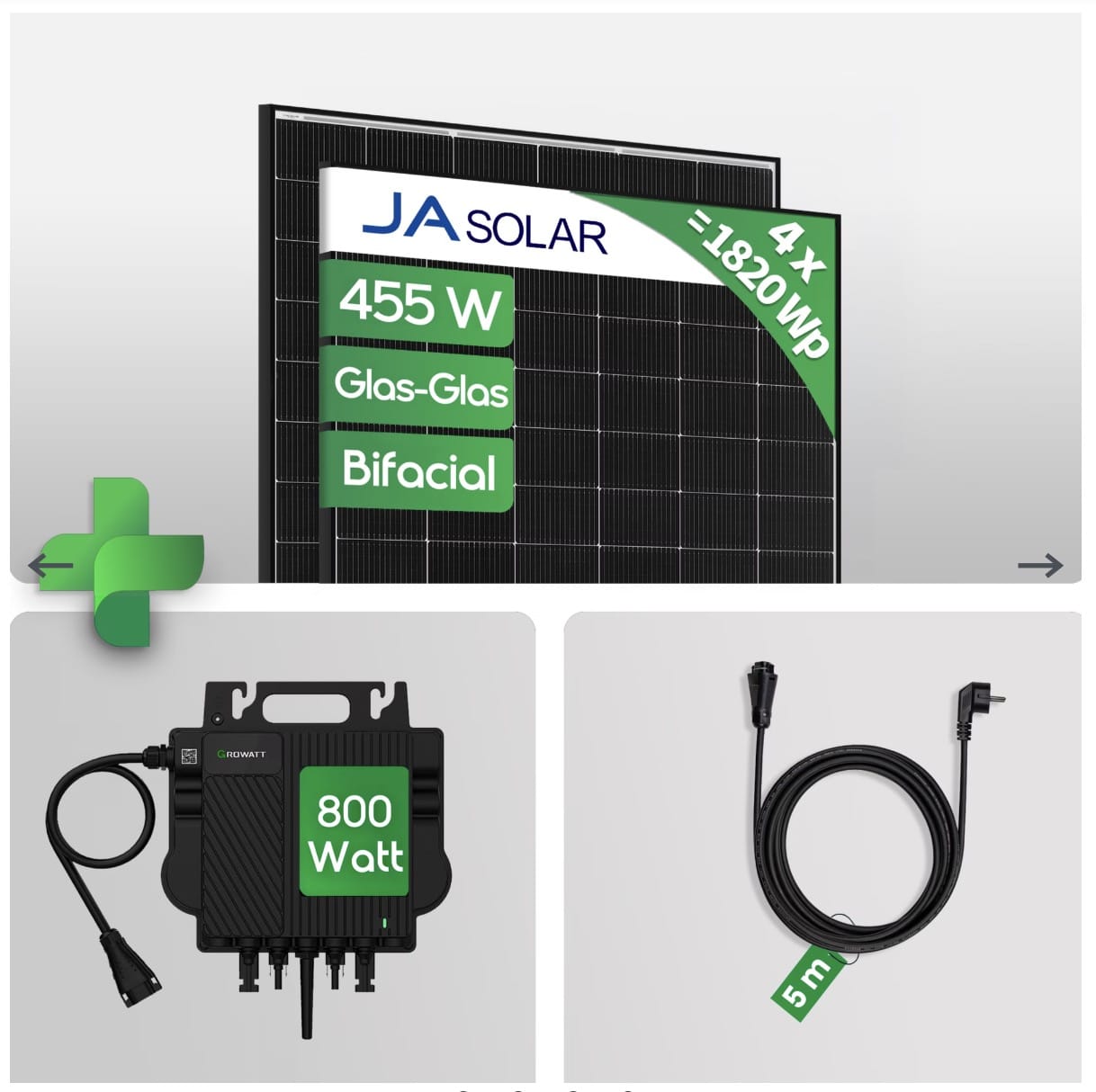 Dieses Set besteht aus vier JA Solar 455W bifazialen Solarmodulen mit einem schwarzen Rahmen, die nicht nur leistungsstark sind, sondern sich auch optisch gut an eure Hausfassade anpassen. Die Module haben eine beeindruckende Effizienz von bis zu 22,8%, was sie zu einer der effizientesten Optionen auf dem Markt macht.