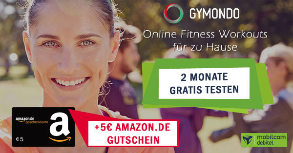 Die Werbung von Gymondo hat bestimmt schon jeder mal gesehen? Normalerweise gibt es nur 7 Tage zum Testen kostenlos und danach werden mtl. 8,99€ (oder sogar mehr) fällig. Via mobilcom-debitel könnt ihr euch jetzt aber ganze zwei Monate kostenlos sichern, bekommt einen 5€ Amazon-Gutschein geschenkt und wenn’s gefällt könnt ihr für 8,99€ weiter machen! Eine ideale Gelegenheit für die guten Vorsätze: