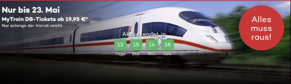 Update Das beliebte MyTrain Angebot ist wieder am Start. Diesmal zum Bestpreis und ohne das Joyn-Abo, aber nur noch bis 23.05.!