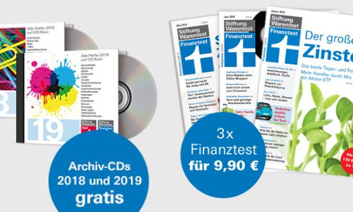 3 Ausgaben Finanztest fuer 990  Archiv CD 2018 u. 2019 gratis3 Ausgaben „test“ für 9,90€ im Abo
