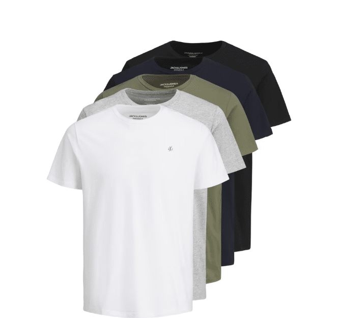 Kleiderschrank auf und irgendwie nichts zum Anziehen da? Mit dem 5er Pack JACK & JONES Male T-Shirts für 31,10€ inkl. Versand bei Amazon bekommt Ihr ein Basic, das zu allem passt und jeden Look komplett macht.