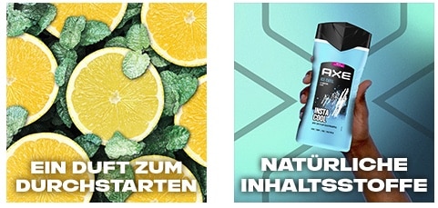- Pflanzenbasierte Präbiotika, die gute Hautbakterien fördern und geruchsbildende Hautbakterien reduzieren, sorgen für weniger Körpergeruch und mehr AXE-Duft