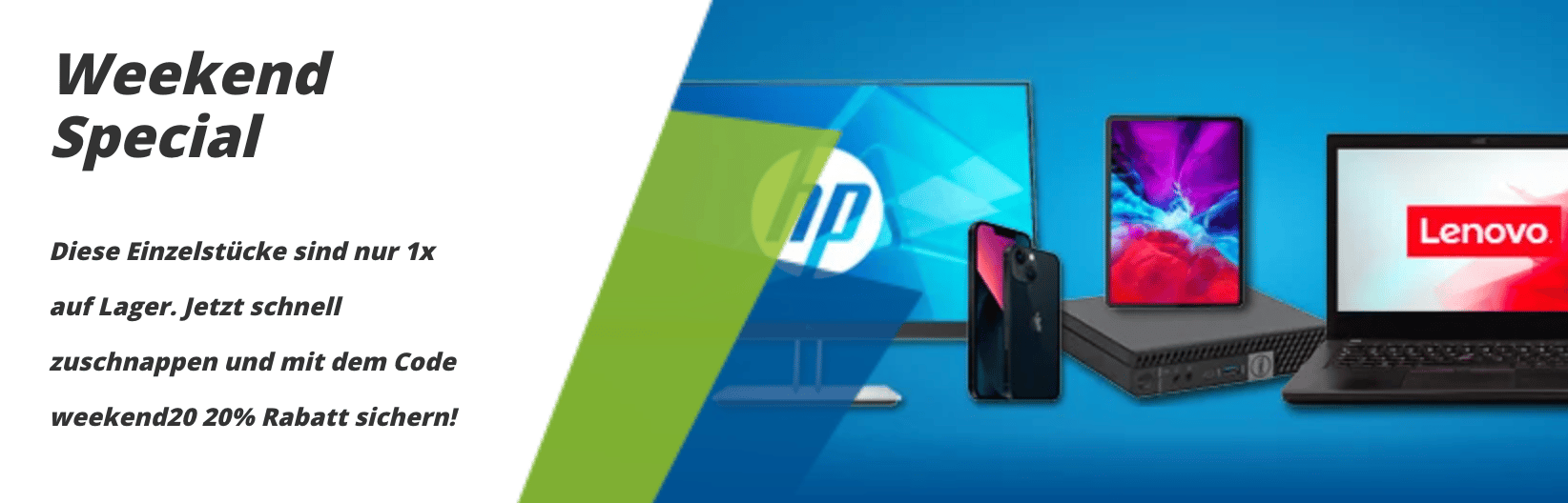 Mit dabei sind Notebooks, PCs, Monitore und noch mehr von vielen beliebten Marken wie HP, Lenovo, Dell, Samsung, Apple und weitere. Beispiele würden hier allerdings eher weniger Sinn machen, da es sich in den meisten Fällen um zügig ausverkaufte Einzelexemplare handelt.