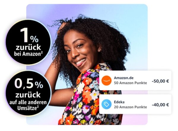 Um 2% zurück (2 Punkte für jeden vollen Euro Umsatz) auf Amazon.de-Umsätze während ausgewählten Amazon.de-Angebotstagen zu erhalten, musst du ein berechtigtes Prime-Mitglied sein. Davon ausgeschlossen sind Personen, die von anderen Prime-Mitgliedern nur dazu eingeladen wurden, deren Prime-Vorteile mitzunutzen (Stichwort „Teilen der Prime-Mitgliedschaft“), sowie Business Prime Kunden. Kundinnen und Kunden werden rechtzeitig informiert, wann diese Amazon.de-Angebotstage stattfinden und welche Tage berechtigt für die Aktion sind. An allen anderen Tagen erhalten Prime-Mitglieder 1% bei Amazon.de in Punkten zurück. Amazon behält sich vor, die für die Amazon Visa geltenden Angebotstage selbst auszuwählen und zu verkünden. Demnach können nicht an allen Amazon.de-Angebotstagen zusätzliche Amazon Punkte gewährt werden.