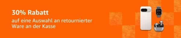 Nur vom 06/09/2023, 00:00 Uhr bis 10/09/2023, 23:59 Uhr, erhalten Amazon-Kunden 30% Rabatt auf ausgewählte Produkte von Amazon Retourenkauf.
