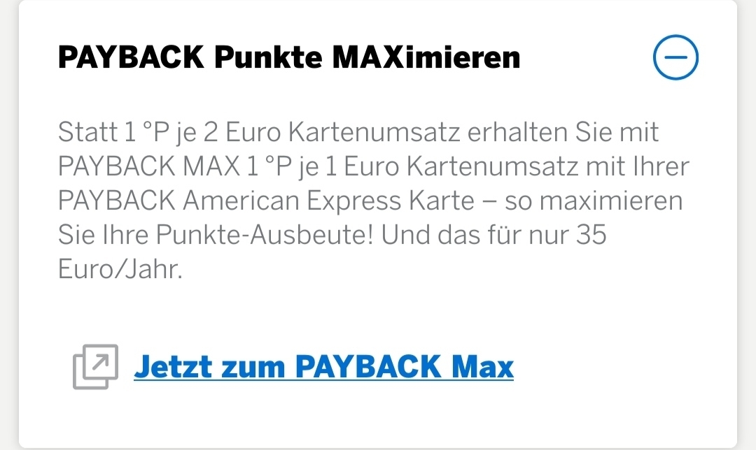 marocoli 12.12.2022, 20:34Leute ihr müsst vor dem bezahlen die Payback Karte scannen und dann mit der Amex bezahlen. somit punktet ihr doppelt. wenn ihr Payback MAX (35€/Jahr) aktiviert punktet ihr pro 1€ Umsatz 3 Punkte!