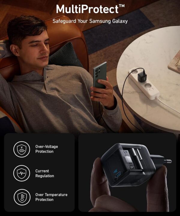 Sicherheit wird bei diesem Ladegerät nicht auf die leichte Schulter genommen. Dank der Multiprotect-Sicherheitstechnologie mit 10 Schutzfunktionen, wie zum Beispiel Kurzschlussschutz und Temperaturkontrolle, sind eure Geräte und ihr selbst gut vor möglichen Gefahren geschützt.
