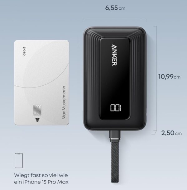 Das ist gerade dann ein Segen, wenn es mal schnell gehen muss und ihr nicht lange auf einen vollen Akkustand warten wollt. Ein weiterer Vorteil ist das integrierte USB-C Kabel, das laut Hersteller sehr widerstandsfähig ist – es soll über 10.000 Biegungen aushalten können. Für Reiseliebhaber:innen ist erwähnenswert, dass dieses Modell flugtauglich ist und somit ohne Bedenken im Handgepäck mitgenommen werden kann. Wer oft unterwegs ist und zuverlässig Geräte laden möchte, findet in dieser Powerbank womöglich den idealen Begleiter.