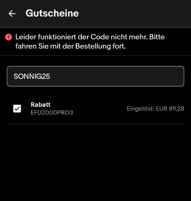 alf4711 30.06.2025, 15:50Der Gutschein “SONNIG25" ist ungültig!
