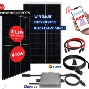 ☀️ Balkonkraftwerk Risen 820W/800Wp + WLAN-Wechselrichter & Adapter (Komplett-Set, drosselbar auf 600W)