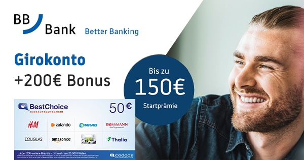 Die BBBank bietet für ihr Girokonto aktuell bis zu 200€ Bonus an: