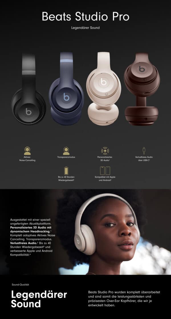 Du suchst nach Kopfhörern, die mit sattem Klang, langer Akkulaufzeit und modernster Technik punkten? Dann sind die Beats Studio Pro die perfekte Wahl für dich! Aktuell bekommst du diese High-End-Kopfhörer bei Amazon für nur 199,99 € (statt 265 €) – ein Angebot, das du nicht verpassen solltest. Wir haben die wichtigsten Features für dich zusammengefasst.