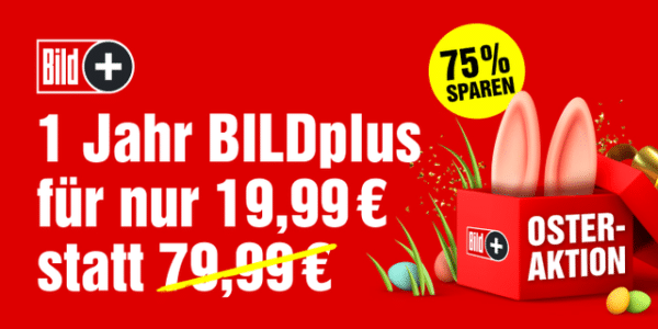 Die Zeitung wird sicherlich nicht jedermanns Geschmack sein, aber das Angebot hier ist wirklich top, denn ab heute bekommt ihr BILDplus für nur 19,99€ jährlich! Das Angebot gilt für die ersten 12 Monate und nur für Neukunden!
