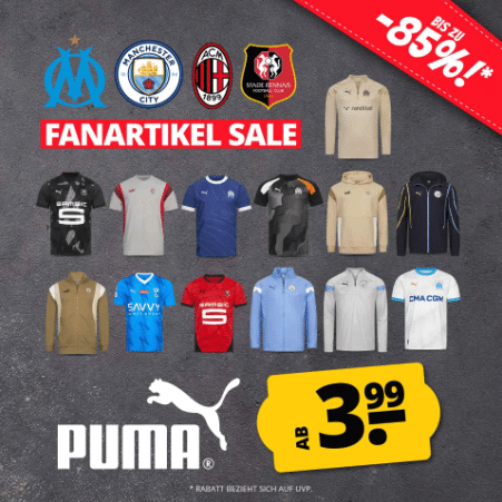 Schaut bei SportSpar rein, denn da könnt ihr im Puma Fanartikel-Sale sehr ordentlich sparen… Dabei ist viel Borussia Dortmund, Manchester City, Olympique Marseille – sowohl für Erwachsene als auch für Kids!