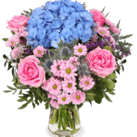 Dieser märchenhafte Blumenstrauß in pink und blau sieht nicht nur schön aus, sondern ist auch noch zu einem tollen Dealpreis von 30,98€ (inkl. Versand) zu bekommen. Zusammengestellt aus Hortensien, Santini, Rosen, Statice und Disteln ist dieser Strauß ein echter Hingucker.