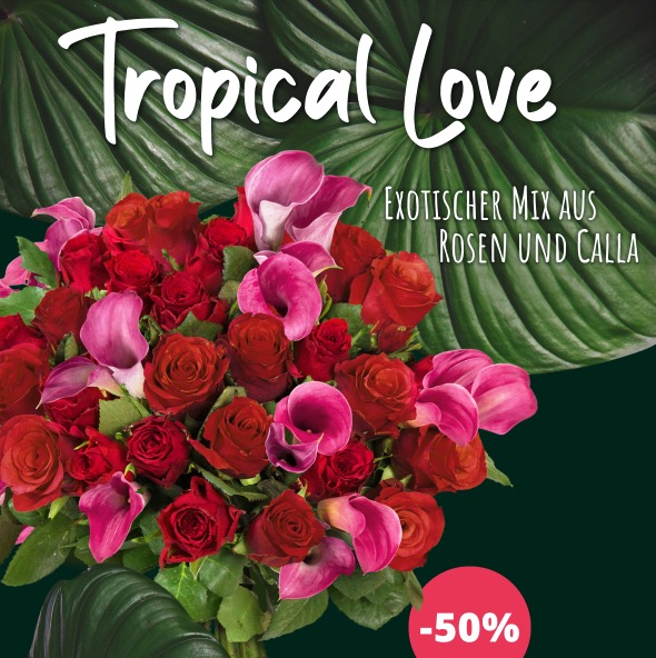 „Dein Lieblingsmensch liegt Dir sehr am Herzen und du suchst nach einem passenden Geschenk? Unser Rosenstrauß „Tropical Love“ vereint klassiche rote Rosen mit tropisch frischen Calla. Mit einer so überraschenden Kombination bleibt Deine Überraschung mit Sicherheit lange beim Beschenkten in Erinnerung.“