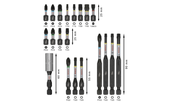 Die Bits sind aus wärmebehandeltem, modifiziertem Stahl gefertigt, was ihnen nicht nur eine exzellente Stabilität, sondern auch eine hohe Widerstandsfähigkeit gegenüber hohen Drehmomenten gibt. Die spezielle Torsionszone hilft dabei, das Risiko eines Bitbruchs zu minimieren, indem sie die Drehmomentbelastung effektiv absorbiert.