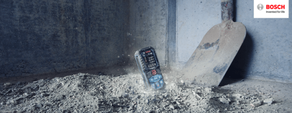 Der Laser-Entfernungsmesser punktet mit seiner Robustheit, denn mit der Schutzart IP65 hält er Staub und Spritzwasser stand und überlebt sogar Stürze aus bis zu 1,5 Metern auf Beton.