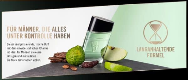 Mit einer Kombination aus tunesischem Rosmarin, saftiger Bergamotte und grünem Apfel setzt der Duft auf eine erfrischende und gleichzeitig herb-maskuline Duftkomposition. Diese Mischung kreiert eine anziehende Kopfnote, die für einen charmanten ersten Eindruck sorgt.