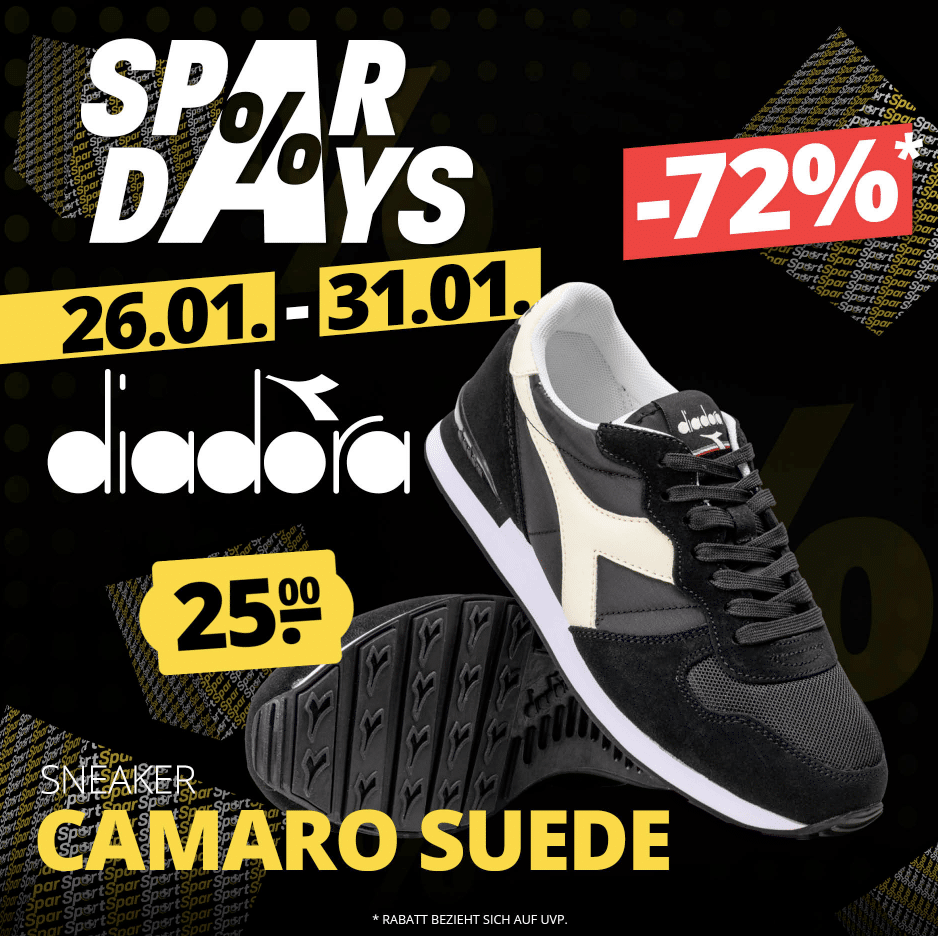 Ihr seid auf der Suche nach stylischen und bequemen Sneakern? Dann haben wir hier etwas für euch: Die Diadora Camaro Unisex Wildleder Sneaker, ein echter Hingucker. Ihr findet die Treter aktuell für nur 28,95 € inklusive Versand bei Sportspar.de. Im Preisvergleich mit Idealo, wo sie für 54,98 € gelistet sind, spart ihr satte 47%!