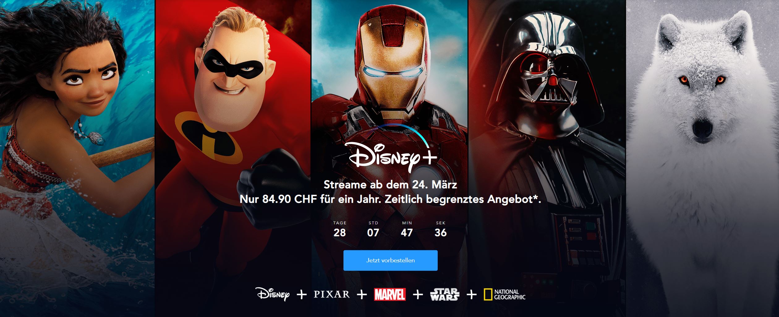 Morgen, am 24. März 2020, startet auch hierzulande der neue Streamingdienst von Disney ganz offiziell. Als Eröffnungsangebot könnt ihr euch jetzt ein Jahresabo für einmalig 5€/Monat sichern, immerhin 10€ jährliche Ersparnis zum Start. Im Vergleich zum Marktführer Netflix schon einen krasse Kampfansage. Mit Disney+ bekommt ihr Zugang zum kompletten Sortiment was zu Pixar, Marvel, Star Wars und National Geographic gehört.