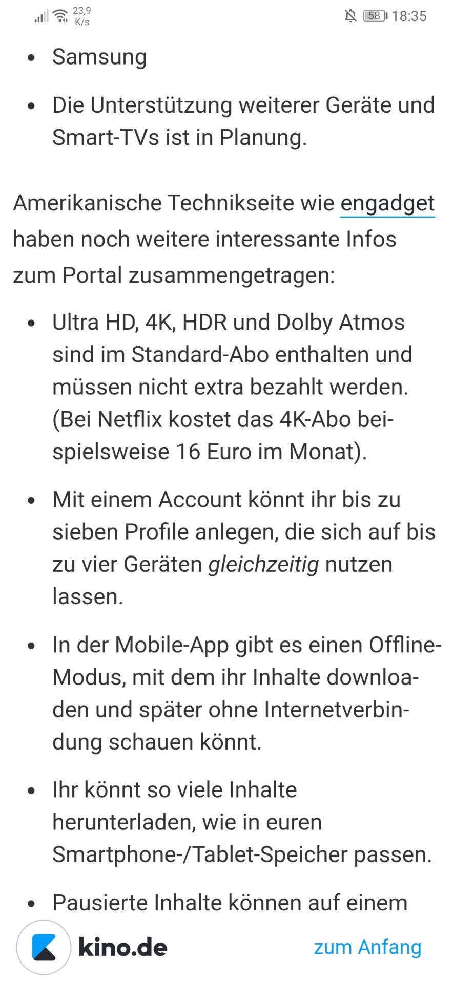 Esturgerter 06.03.2020, 09:43Ist das mit 4k und HDR oder wie bei Netflix extra teurer? Ich finde dazu keine Angaben aber wenn ja wäre es ein top Angebot zusätzlich zu Prime das die meisten sowieso haben.