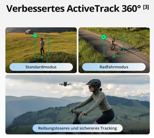 Die Mini 5 Pro hebt sich mit ihrem 48-mm-Med-Tele-Modus ab, der im Vergleich zum Digitalzoom des Vorgängermodells eine verbesserte Bildqualität liefert und Motive mit einem 2-fach-Zoom hervorhebt. Für Porträtaufnahmen optimiert die Drohne automatisch Hauttöne und Kontraste. Der innovative Gimbal unterstützt nicht nur echte vertikale Aufnahmen, sondern auch kreative Flugmodi, die dynamische Szenen und Zeitlupenaufnahmen ermöglichen.