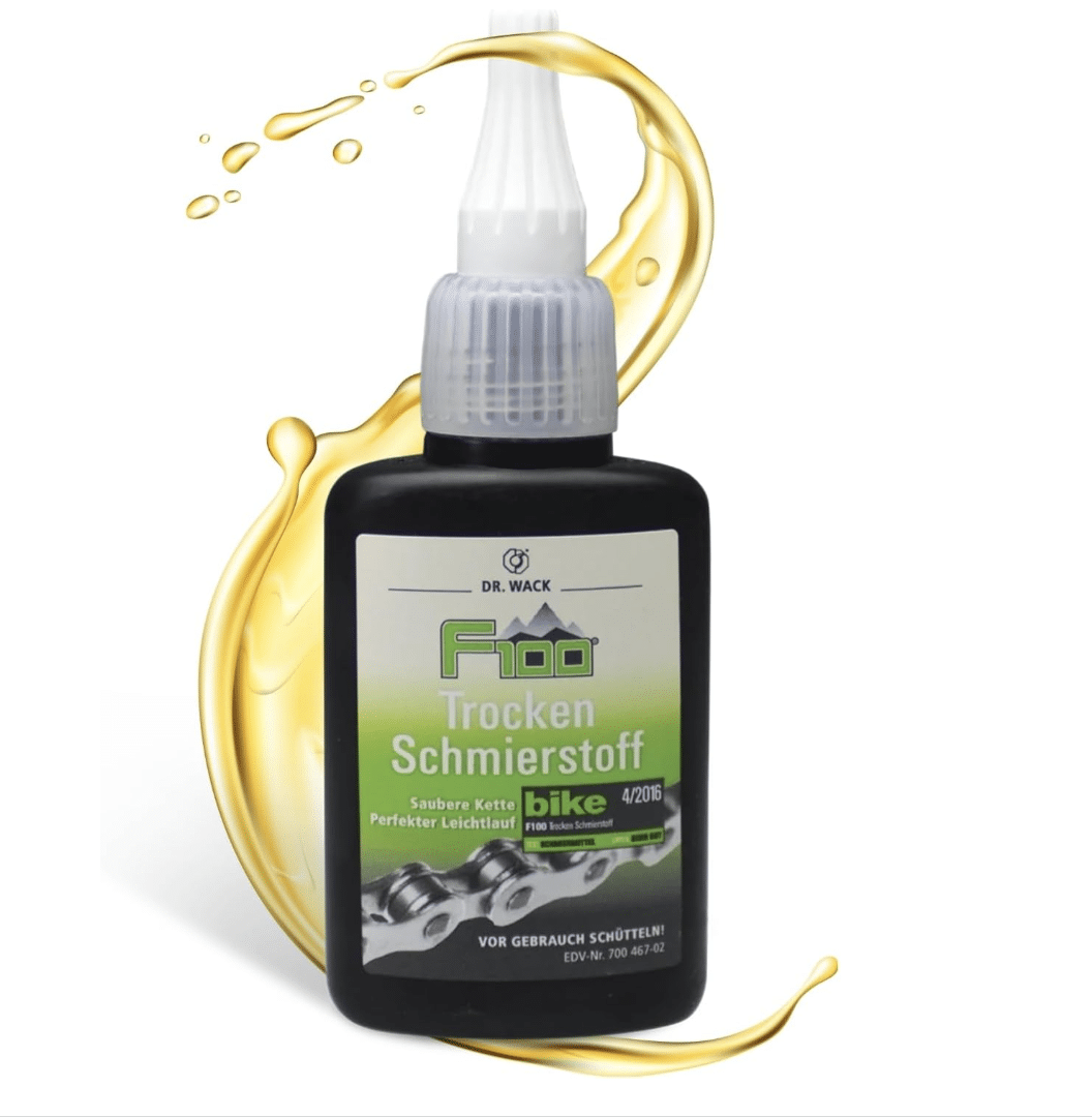 Ihr könnt euch also auf eine optimale Schmierung verlassen, die zudem die Reibung minimiert und das Fahrrad leiser macht. Hinter dem F100 Trockenschmierstoff steht die Dr. Wack Chemie GmbH, eine Firma mit Tradition und einem Fokus auf Qualität.