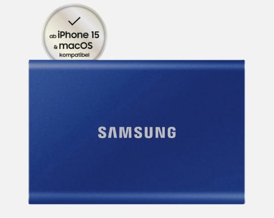 - Samsung Portable SSD T7 (1TB, Blue) für 69,29€ statt 88€