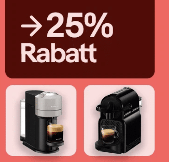 So startet ihr richtig in den Morgen! Bei eBay bekommt ihr aktuell bis zu -25% Rabatt auf Nespresso. Gönnt euch die ikonischen Kapselautomaten zu starken Preisen! Gebt dazu einfach den Code: DELTA25HERBST ein.