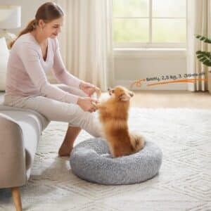 Das Bett ist mit seinen Maßen von 60 cm Durchmesser und 20 cm Höhe ideal für Katzen und kleine Hunde bis zu 11 kg. Es lohnt sich, euer Tier zu messen und zu wiegen, bevor ihr euch für dieses Bett entscheidet.