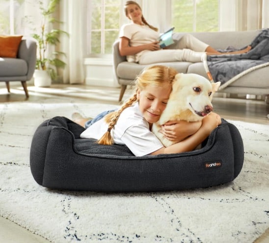 Ihr seid auf der Suche nach einem neuen, bequemen und günstigen Hundebett für eure Vierbeiner? Das Hundebett von Feandrea könnte das Richtige für euch sein. Es hat einen waschbaren Bezug und ist in Leinenoptik gehalten. Aktuell bekommt ihr das Hundebett in der Größe 90 x 75 x 25 cm für nur 22,09€ 25,99€ per Prime Versand.