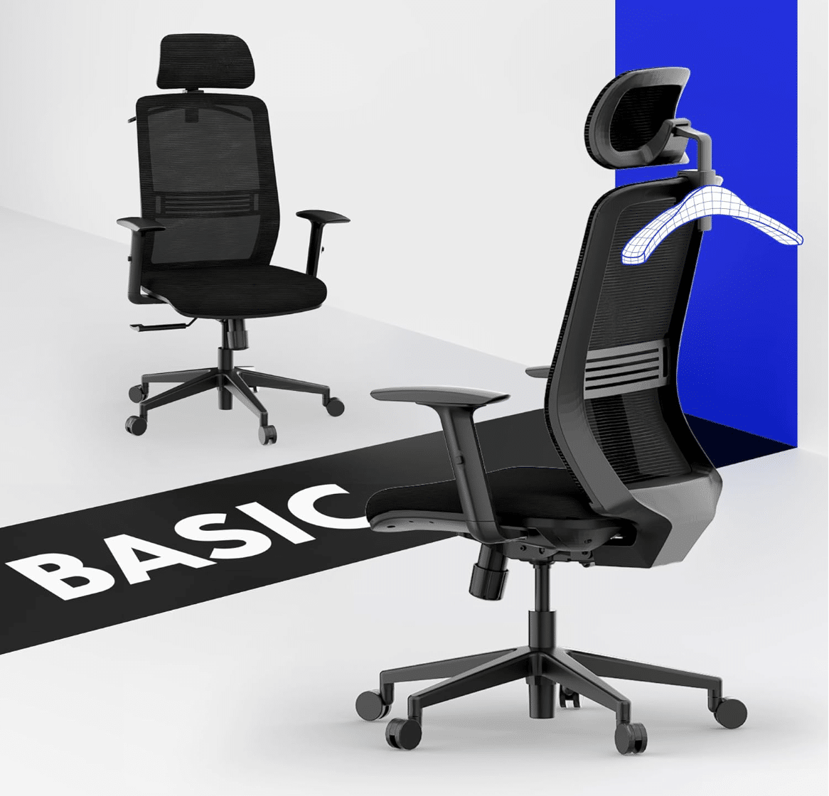 Die Anpassungsmöglichkeiten dieses Stuhls gehen weit über die Norm hinaus. Ihr könnt Armlehnen und Lendenwirbelstütze nach Bedarf bis zu 10 cm in der Höhe verstellen. Auch die Kopfstütze ist höhen- und winkelverstellbar.