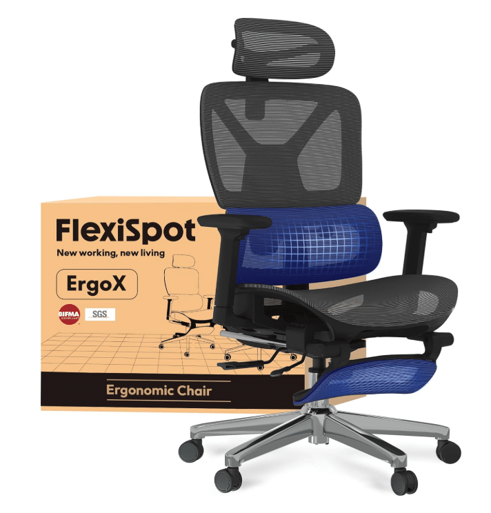 - FLEXISPOT ErgoX Ergonomischer Bürostuhl mit Fußstütze Dunkelgrau für 180,49€ (PVG: 272€)