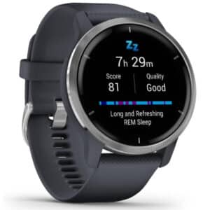 Mit Extras wie Schlafanalyse mit Sleep Score, Health Snapshot und der Bestimmung des Fitnessalters wird sie zum umfassenden Gesundheitsbegleiter. Mehr als 25 vorinstallierte Sport-Apps und der Garmin Coach unterstützen euch bei verschiedensten Aktivitäten.Auch im Alltag macht die Venu 2 vieles leichter. Ihr könnt kontaktlos mit Garmin Pay bezahlen und mit Speicherplatz für bis zu 650 Songs eure Musik immer dabei haben. Smartphone-Benachrichtigungen informieren euch über alles Wichtige, und Funktionen wie die Unfallbenachrichtigung bieten zusätzliche Sicherheit. Verfügbar in verschiedenen Farben und Stilen, findet jeder das passende Design, und sie ist kompatibel sowohl mit iPhones als auch mit Android-Geräten.