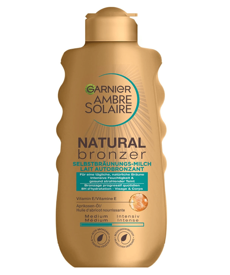Die Garnier Ambre Solaire Natural Bronzer Selbstbräunungs-Milch ermöglicht eine naturgetreue Bräune, ohne Sonneneinfluss. Schon eine Stunde nach dem Auftragen entfaltet sie ihre Wirkung und bietet ein gleichmäßiges Bräunungsergebnis, das bis zu einer Woche anhält.