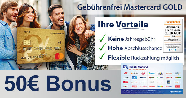 Über die gebührenfreie Mastercard von Advanzia (Gebührenfrei.com) haben wir ja schon einige Male geschrieben. Jetzt ist sie für kurze Zeit mal wieder inklusive 50€ Bonus zu haben. Sie ist nach wie vor eine der beliebtesten Kreditkarten für Online-Einkäufe im Ausland und auch für Viel-Reisende* sehr interessant, falls ihr noch eine Kreditkarte als Backup sucht.