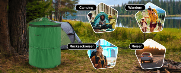 Im Unterschied zu anderen, eher sperrigen Duschzelten, überzeugt dieses Modell mit seiner kompakten Größe. Es passt locker in den Rucksack und ist daher ein praktischer Begleiter für alle spontanen Abenteuer.