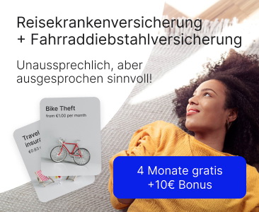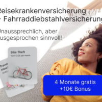 Wir können euch jetzt in Kooperation mit getsafe wieder einen Top-Deal anbieten: Eine kostenlose Versicherung für euer Fahrrad sowie eine Reisekrankenversicherung über jeweils 4 Monate. Und on top gibt es sogar noch 2x einen 5€ Amazon.de-Gutschein* gratis dazu! Auch im Schadensfall müsst ihr nichts bezahlen, da hier keine Selbstbeteiligung anfällt. Und zudem sind die Versicherungen jederzeit kündbar!