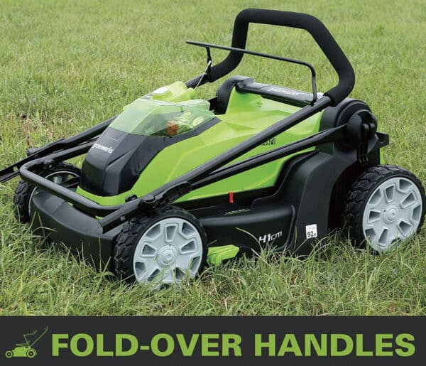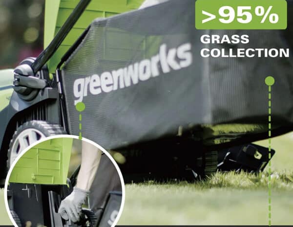 Bei der Handhabung punktet der Mäher mit fünf einstellbaren Schnitthöhen, die per Hebel von 25mm auf 80mm angepasst werden können, was eine flexible Gestaltung des Rasenschnitts ermöglicht. Das Schnittgut lässt sich praktisch im 50 Liter fassenden Auffangsack sammeln oder als Mulch verwenden – ganz nach Bedarf. Die großen Hinterräder garantieren ein leichteres Manövrieren, und dank des klappbaren Griffs wird auch die Aufbewahrung zum Kinderspiel. Nicht zu vergessen ist das Schnellladegerät, das die Batterien in nur 30 Minuten wieder auflädt. Außerdem sind die Batterien mit allen Greenworks 40V-Geräten kompatibel, was nicht nur den Geldbeutel schont, sondern auch Platz spart und zur Abfallreduktion beiträgt. Zudem legt Greenworks eine dreijährige Garantie auf den Rasenmäher und eine zweijährige auf die Batterien oben drauf.