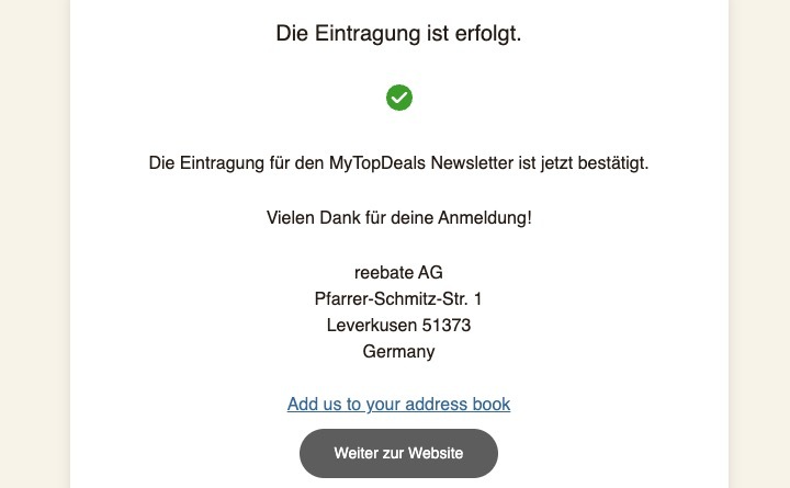 Wird bei euch vielleicht ein Pop blockiert, was die Anmeldung bestätig? Denn dieses müsste euch nach dem Klick auf anmelden auf die Besätigungsseite führen?