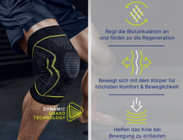 Ihr moderater Stützgrad sorgt für Stabilität und Kompression, was insbesondere bei Schmerzen, Schwäche oder Verletzungen des Knies hilfreich sein kann. Damit das Knie bei Bewegungen entlastet wird, sind druckreduzierende Polster und seitliche Stabilisatoren integriert.