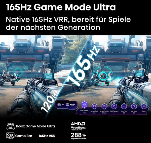 Für die Zocker unter euch hat das Gerät ein spezielles Extra: Der Game Mode Ultra mit einer Bildwiederholrate von 165 Hz und AMD Freesync Premium ermöglicht ein reibungsloses Spielerlebnis – ergänzt durch eine praktische Game Bar für noch mehr Spaß beim Zocken. Die Vielfalt an HDR-Technologien wie Dolby Vision IQ, HDR10, HDR10+ und HLG macht das Farbspektrum breit und die Details scharf, damit ihr euch voll in das Geschehen eintauchen könnt.