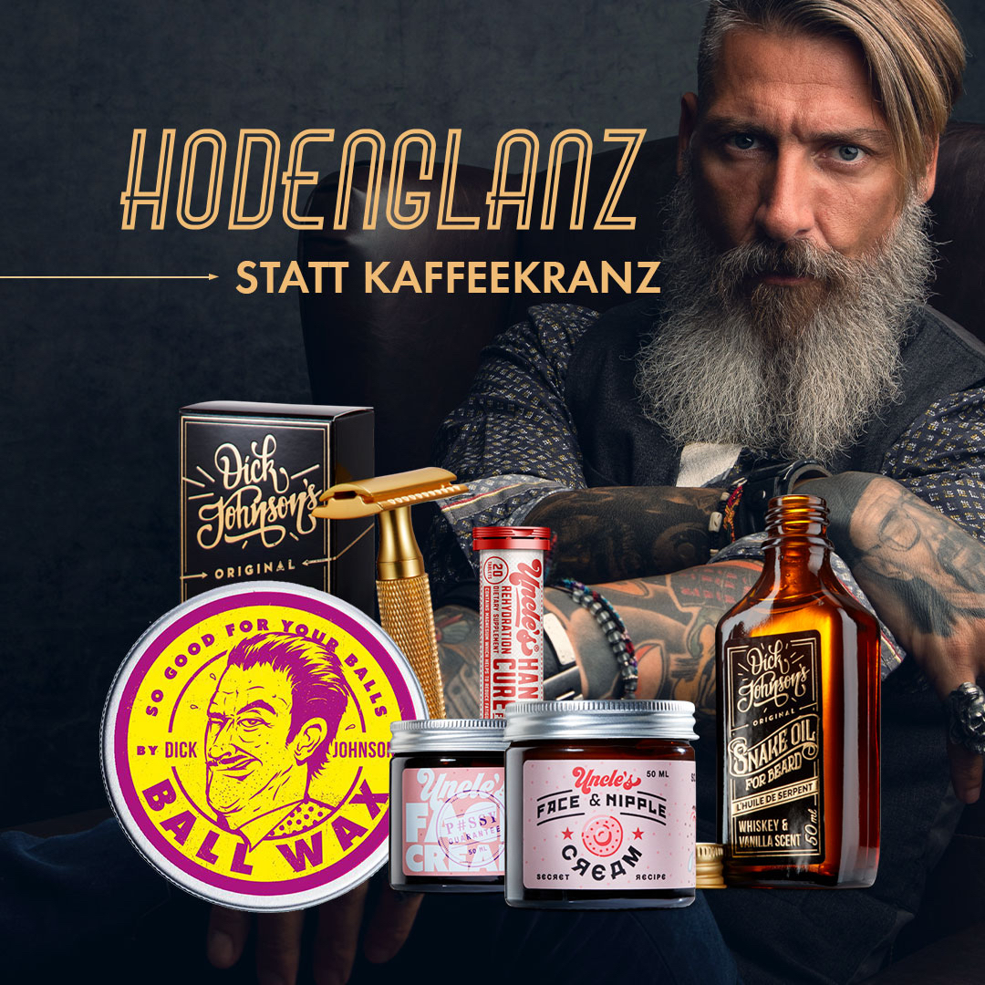 Wer noch ausgefallene Geschenke für Väter im Freundeskreis sucht oder selbst seinen Bart geschmeidig halten möchte, der sollte sich mal bei Dick Johnson umsehen! Der Shop bietet euch eine große Auswahl an Pflegeprodukten für die Herren der Schöpfung und hat von dem legendären Hodenwachs ‚Ball Wax‘ bis hin zu hochwertigen finnischen Bartölen mit Whiskey & Vanille Duft alles im Sortiment.