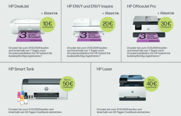 🖨️ HP Drucker: Bis zu 50€ Cashback + 10€ BestChoice-Gutschein on Top!