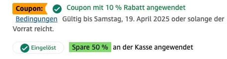 TomPomm1001 07.04.2025, 19:01hab nur den 10% Coupon, aber nicht die 50%.